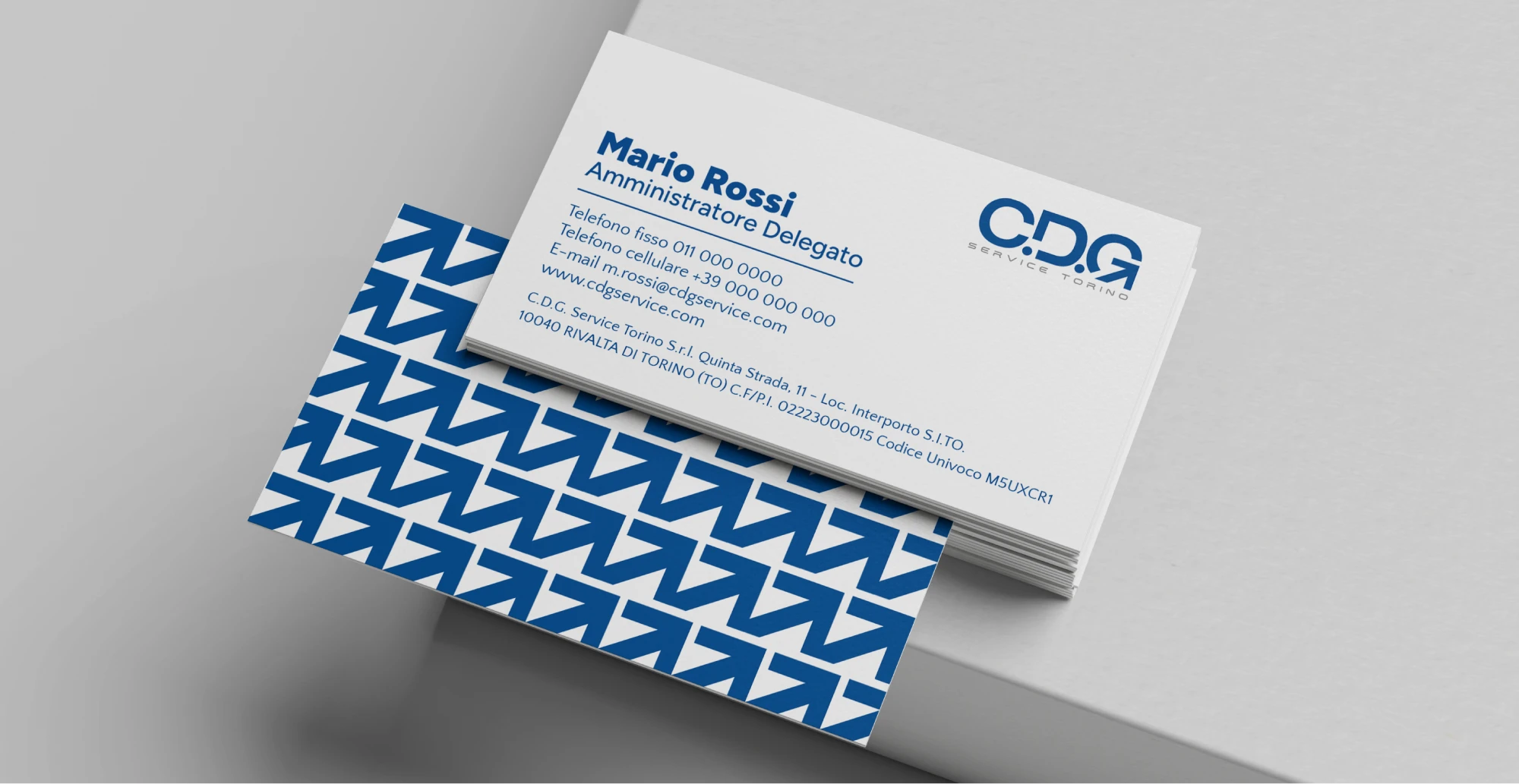 Biglietti da visita, carta intestata, buste per lettere, cartelline porta documenti traducono la nuova identity in strumenti concreti di lavoro, garantendo coerenza su tutta l’immagine coordinata.
